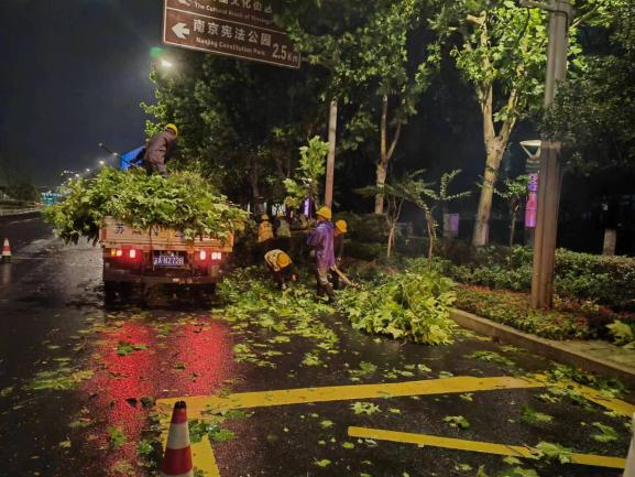 集團(tuán)園林經(jīng)濟(jì)公司作為河西地區(qū)市政道路及綠化管養(yǎng)的主力軍,黨員干部沖在前,全體應(yīng)急人員奮戰(zhàn)在所轄市政道路綠化項(xiàng)目一線,累計(jì)出動(dòng)巡查消險(xiǎn)人員329人次,巡查排險(xiǎn)車輛32臺(tái)次,搶險(xiǎn)范圍包括市政道路、市政水務(wù)、道路綠化、公園綠化養(yǎng)護(hù)等環(huán)節(jié),共計(jì)清理倒伏樹木147株,清理斷枝303處,排除積淹水點(diǎn)15處。
