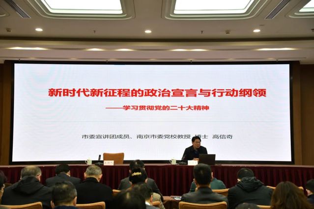 根據(jù)中央和省市委、市國資委黨委部署要求,12月2日下午,河西集團(tuán)召開學(xué)習(xí)宣傳貫徹黨的二十大精神宣講會(huì),邀請(qǐng)市委宣講團(tuán)成員、市委黨校科研處處長高信奇教授做專題宣講,進(jìn)一步引導(dǎo)集團(tuán)廣大黨員干部職工全面深入學(xué)習(xí)宣傳貫徹黨的二十大精神,切實(shí)把思想和行動(dòng)統(tǒng)一到黨的二十大精神上來,更加深刻領(lǐng)悟“兩個(gè)確立”的決定性意義,不斷增強(qiáng)“四個(gè)意識(shí)”、堅(jiān)定“四個(gè)自信”、做到“兩個(gè)維護(hù)”。會(huì)議由集團(tuán)黨委副書記、董事繆昌根主持。集團(tuán)領(lǐng)導(dǎo)、全體中層干部及集團(tuán)下屬各公司黨務(wù)工作者參加會(huì)議。