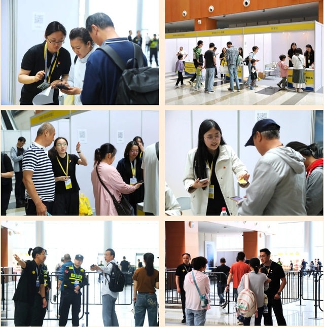 黨員突擊隊(duì)成員們身著統(tǒng)一制服,精神飽滿地投入各項(xiàng)支援工作。在現(xiàn)場登記處,他們熱心引導(dǎo)觀眾掃碼登記入場,無論是手機(jī)操作不熟悉,還是掃碼過程中出現(xiàn)的技術(shù)問題,他們都能細(xì)心解答,讓觀眾感受到省心和貼心;在入場核驗(yàn)處,他們嚴(yán)格執(zhí)行入場規(guī)定,維護(hù)展會(huì)秩序,確保展會(huì)安全有序進(jìn)行;在服務(wù)指引時(shí),他們?yōu)閰⒄股毯陀^眾提供熱情周到的服務(wù),耐心解答疑問,主動(dòng)提供幫助;在現(xiàn)場調(diào)研時(shí),他們認(rèn)真收集反饋意見,為今后的展會(huì)工作提供有力支持;館內(nèi)黨員先鋒示范區(qū)還同時(shí)提供信息咨詢、失物招領(lǐng)、應(yīng)急充電服務(wù)以及應(yīng)急藥箱和免費(fèi)飲用水等物資,多措并舉為前來參觀的群眾營造良好的觀展體驗(yàn)。