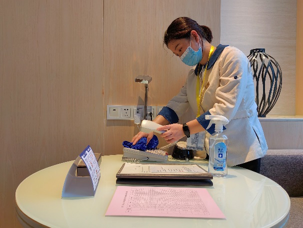 各部門嚴(yán)格落實防疫舉措,提前對閉環(huán)區(qū)域的空調(diào)、通風(fēng)系統(tǒng)進行全面檢查和清潔消殺,對衛(wèi)生間、電梯間等公共區(qū)域的高頻接觸物體表面進行集中消毒,做好檢查記錄。