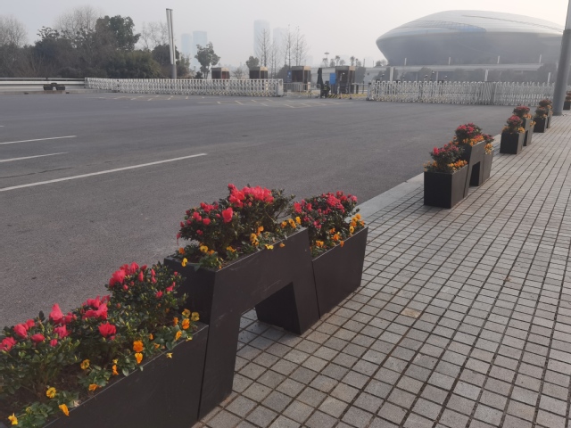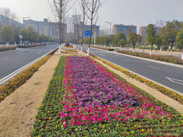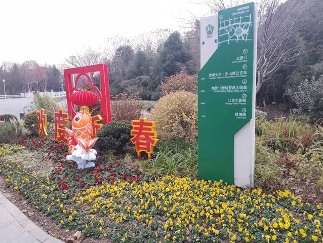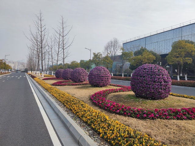 南京奧體中心北門夢都大街人行道旁新增設(shè)一組 “歡度新春”花境式小品生態(tài)微景觀,深紫色羽衣甘藍與黃色三色堇植物的搭配,簡潔明了,“鯉魚躍龍門”小品和“歡度新春”字樣的組合營造出濃濃的年味。道路中分帶的花球換上了“新裝”,4個巨大的羽衣甘藍花球在太陽下盡情地綻放著,烘托出了冬奧會的隆重氣氛,寓意在歡度新春佳節(jié)之際,祝愿冬奧會的奧運健兒們能夠魚躍龍門創(chuàng)佳績。
