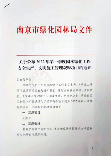 近期,河西集團園林公司承建的仙鶴片區(qū)北部中學(xué)景觀綠化工程榮獲2022年第一季度南京市園林綠化工程安全生產(chǎn)、文明施工管理示范觀摩項目。