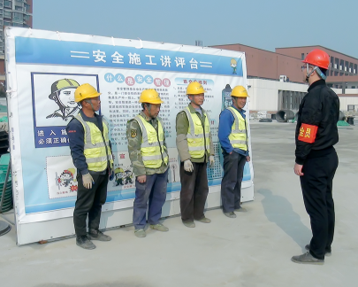 本工程施工范圍廣、涉及專業(yè)多,交叉施工影響大,安全文明管理難度高。為此項目部精心組織、科學(xué)策劃,從開展安全教育,提高全員安全意識著手,將安全教育工作常態(tài)化。并且嚴(yán)格實行工程安全技術(shù)交底制度、定期組織應(yīng)急演練、施工現(xiàn)場設(shè)置醒目的安全警示標(biāo)志,時刻提醒工人安全生產(chǎn)、規(guī)范作業(yè)。